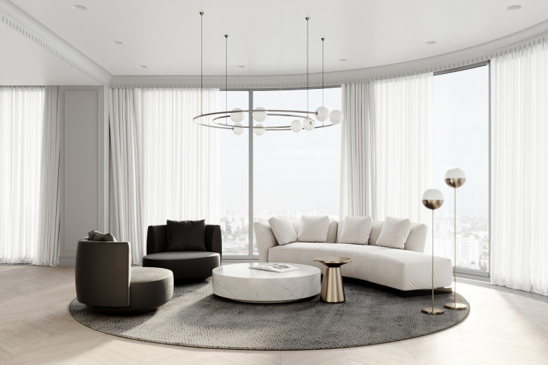 455 квартир и 27 пентхаусов, площадью 64,8-301 м2, с панорамным остеклением, террасами и патио. В квартирах есть гардеробные, окна в ванной, французские окна и балконы. Европейские полы